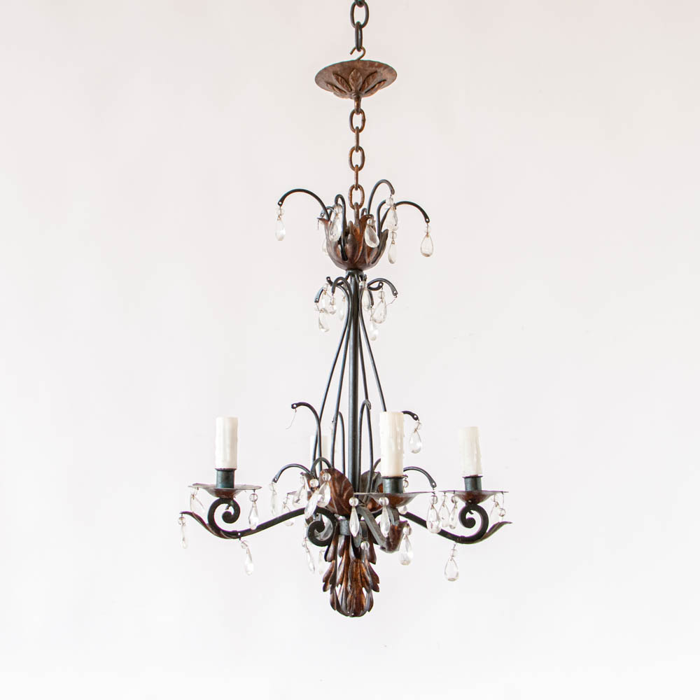 Small Iron and Crystal Chandelier