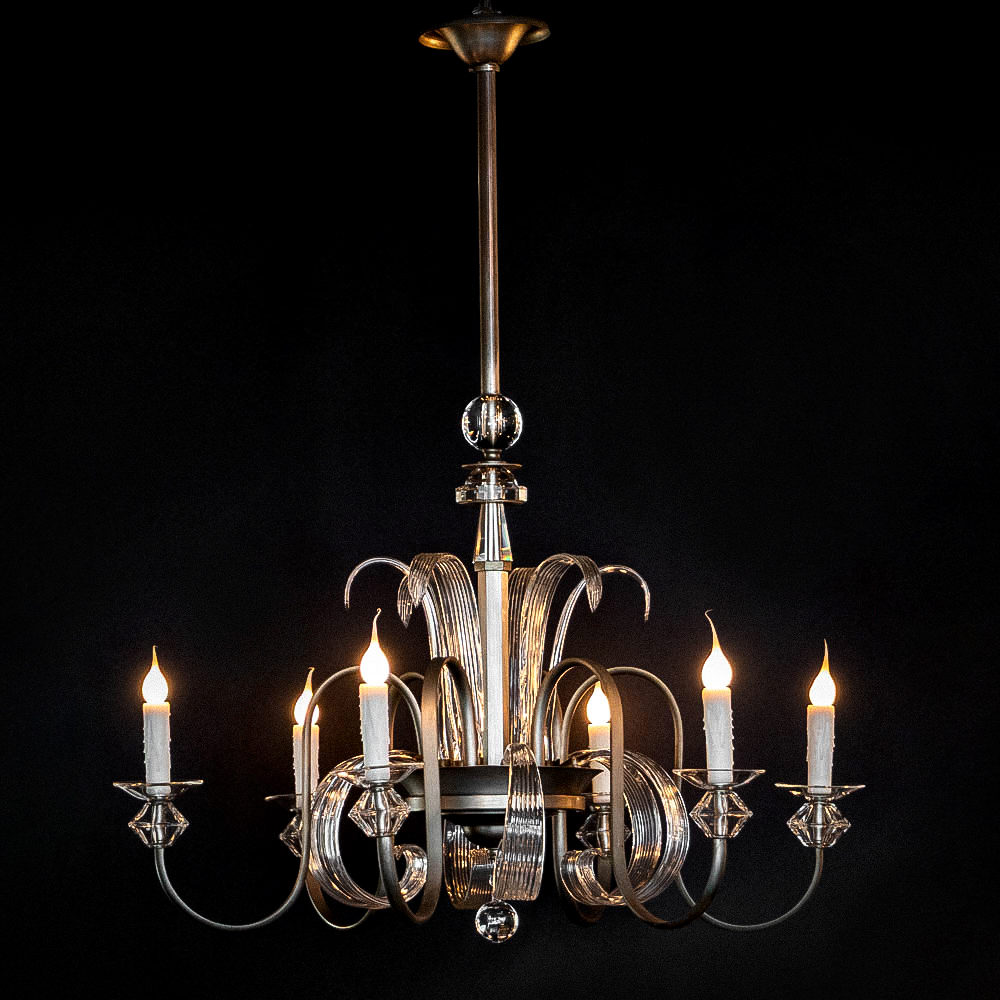 Nickle and Glass Mid-Century Chandelier