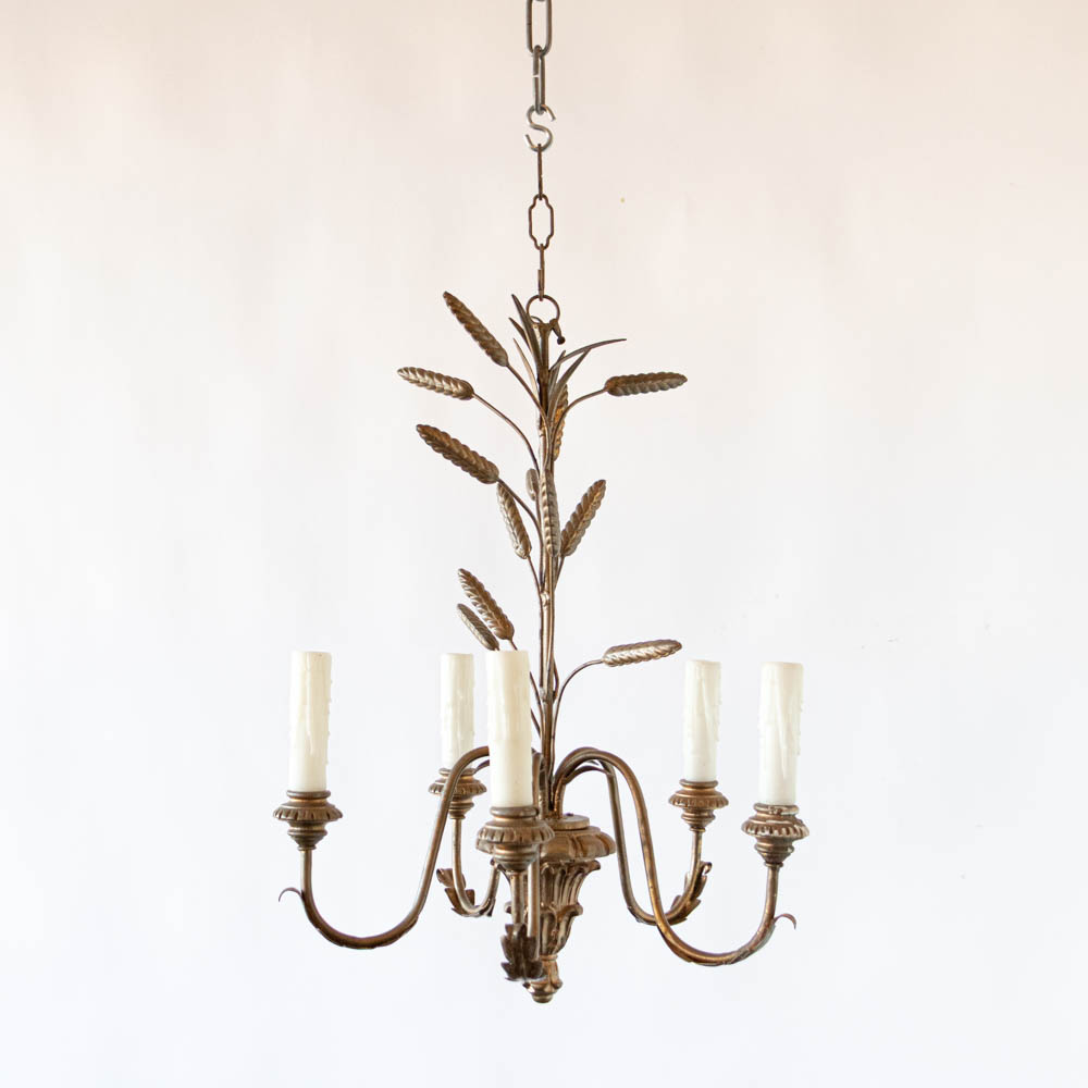 Elongated Iron Chandelier with Primitive Fleur de Lis