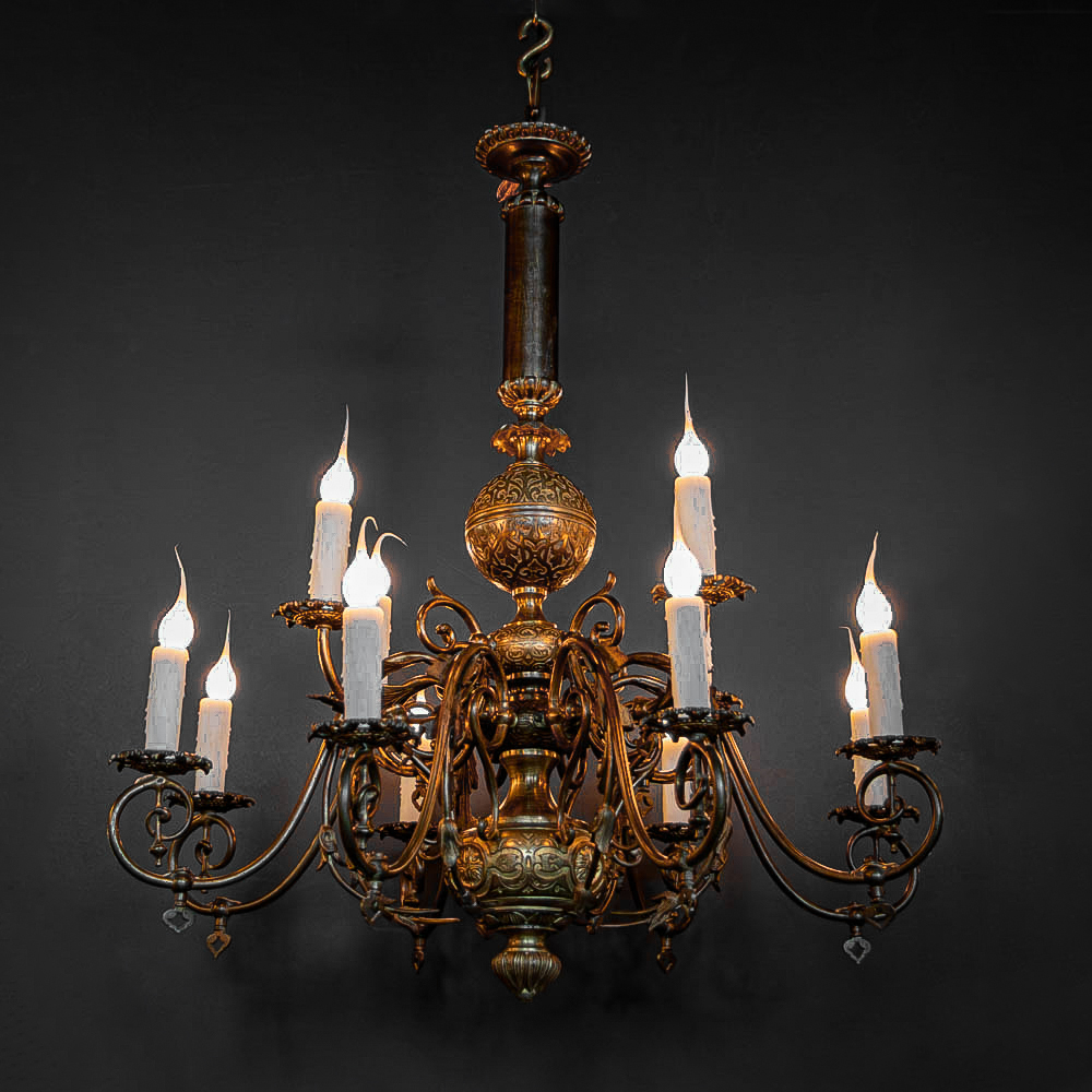 Ornate Bronze Gas Chandelier with Orb